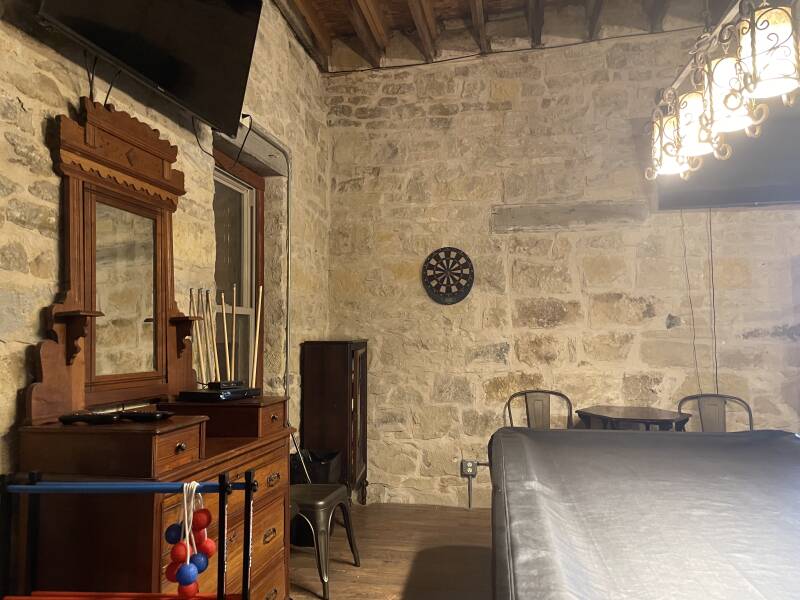 The groom's suite. This picture makes it look small but it has a pool and poker table, big screen TVs, yard games, and leather couches for the men to hang out, because women usually take longer to get ready. And the outdoor games can be used to occupy children if needed.