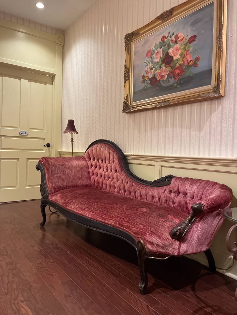 Antique sofa in hallway on second floor. The entire hotel has pieces like this everywhere.