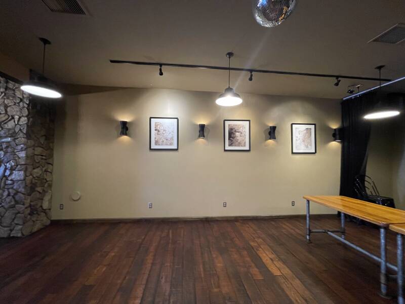 This is the wall to the right, across from the bar. More decor that makes this space unique.